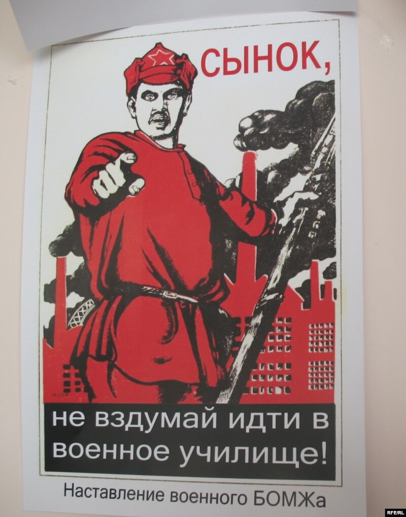 На пресс-конференции была представлена выставка плакатов, посвященных проблеме неисполнения министерством обороны решений судов о предоставлении жилья бывшим военнослужащим. Один из плакатов был похож на известный плакат советской эпохи «Ты записался добровольцем на фронт?», призывающий каждого в армию для защиты отечества. Но в плакат на этот раз был вложен противоположный смысл. Его значение прокомментировал бесквартирный подполковник запаса Раушанбек Ботантаев: