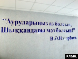 Эти портреты висели там целый год. Нет, даже больше года. Потом, правда, убрали. Убрали, видимо, когда уже они уже выцвели. Еще можно увидеть «мудрые» слова Нурсултана Назарбаева тут и там: всякие там лозунги типа “партия и народ едины”. Все это, кажется, уже буквально в недавнем прошлом было. Как говорится, все это мы уже проходили.