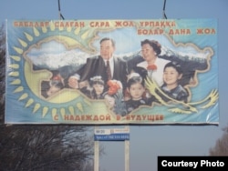 Назарбаев с билбордов вдоль кривой дороги все еще призывает отдать ему наши голоса