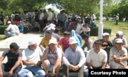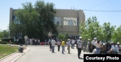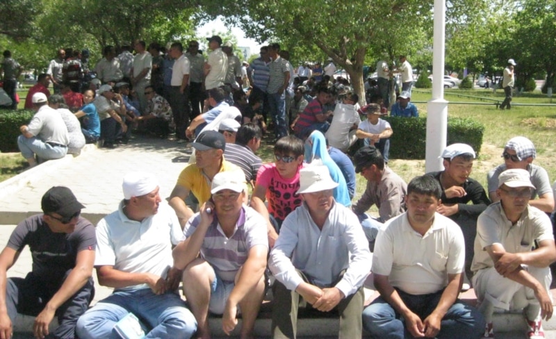 Нефтяники пикетируют акимат Мангистауской области. Актау, 2 июня 2011 года.