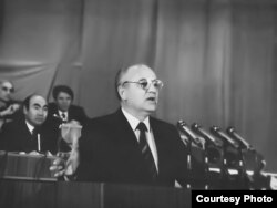 Президент СССР Михаил Гобачев выступает в Бишкеке во время своего последнего визита по стране. 5 ноября 1991 года.