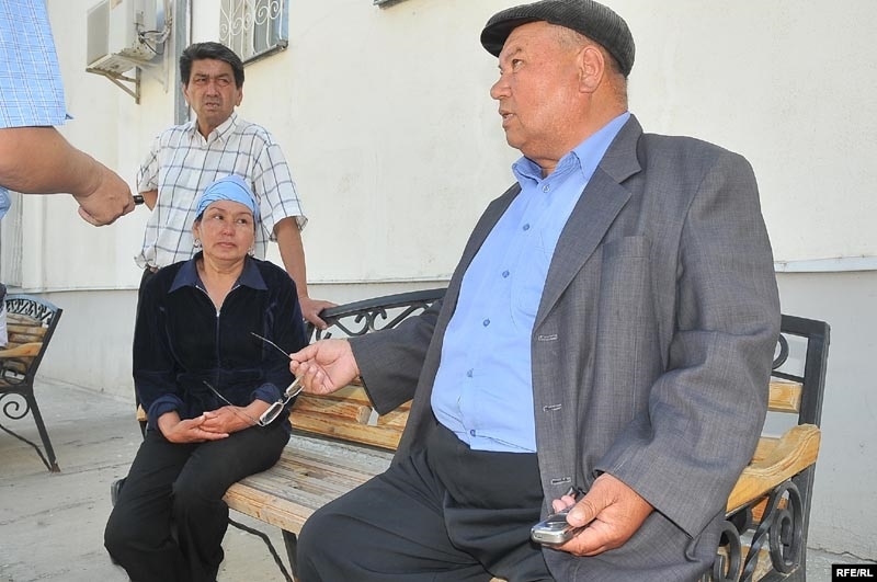 Слева направо: брат погибшего Габидоллы Шолакова - Кубайдолла Шолаков, жена погибшего - Насихат Шолакова, брат погибшего - Халидолла Шолаков возле областной больницы. Атырау, 26 мая 2009 года.