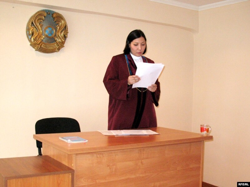 Судья Медеуского районного суда города Алматы Венера Тохтарбаева читает приговор против независимой газеты и ее журналиста. Алматы, 19 марта 2009 года .