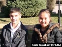 Студент Казахского автомобильно-дорожного университета Олег Усик (слева) и студентка Казахского аграрного университета Айгерим Джаппарова (справа). Алматы, 18 ноября 2010 года.