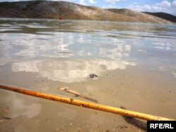 Жители села Елтай вынуждены пить воду из этого водоема. Толебийский район Южно-Казахстанской области. 29 июня 2009 года.