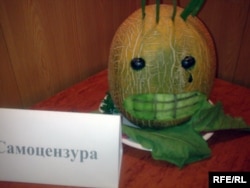 Блюдо под названием «Самоцензура» на акции протеста на тему «Язык как орган и его применение в условиях современного Казахстана». Талдыкорган, август 2009 года.