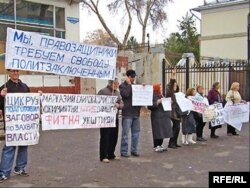 Активисты правозащитного движения проводят демонстрацию протеста у здания генеральной прокуратуры Узбекистана. Ташкент, 7 марта 2008 года.