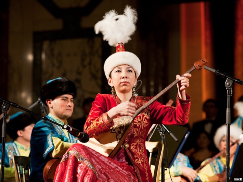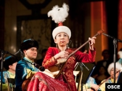 Казахская домбристка выступает на концерте в честь инаугурации председательства Казахстана в ОБСЕ. Вена, 13 января 2010 года.