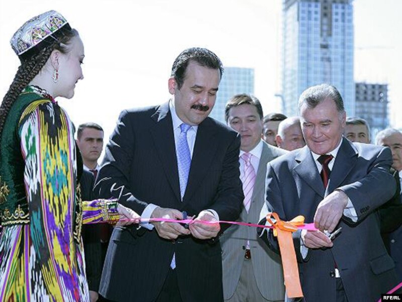 Премьер-министр Казахстана Карим Масимов и премьер-министр Таджикистана Окил Окилов открывают Дни культуры Таджикистана в Астане. 23 августа 2007 года.