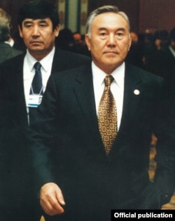 Амангельды Шабдарбаев, начальник Службы охраны президента и сам Нурсултан Назарбаев. Астана, 2000 год.