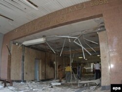 На месте взрыва бомбы в генеральной прокуратуре Узбекистана. Ташкент, 30 июля 2004 года.