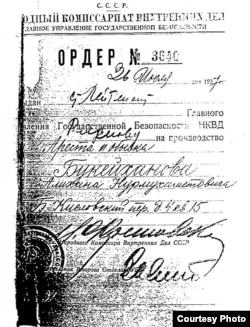 Ордер на арест Алихана Букейханова в июле 1937 года. Из архива ФСБ РФ. Москва, февраль 1995 года.