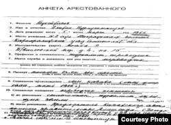 Анкета арестованного Алихана Букейханова. Из архива ФСБ РФ. Москва, февраль 1995 года.