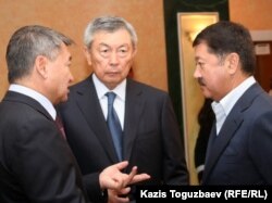 Панихида по бывшему помощнику Назарбаева Владимиру Ни. Слева направо: Даниал Ахметов - бывший министр обороны, Нуртай Абыкаев - председатель КНБ, Булат Утемуратов - бывший управляющий делами президента Казахстана. Алматы, 12 сентября 2010 года.
