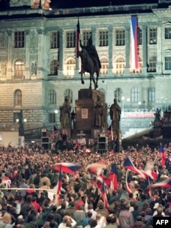 Акция в поддержку Вацлава Гавела на пост президента Чехии на Вацлавской площади. Прага, 17 декабря 1989 года.