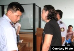 Сторонники Ермека Нарымбаева, активиста оппозиции, во время оглашения приговора ему. Второй слева - оппозиционный политик Жасарал Куанышалин. Алматы, 23 июня 2010 года.