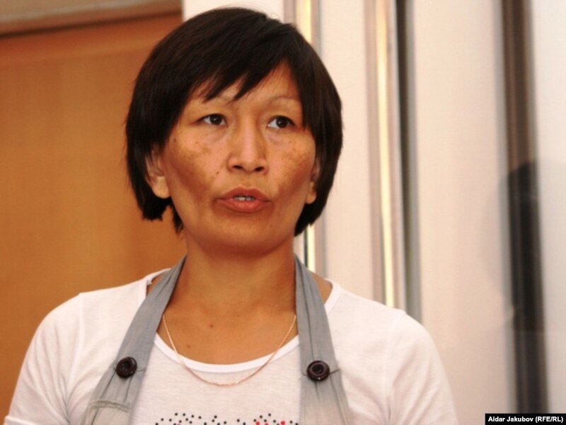 Зоя Нарымбаева, жена и общественный защитник осужденного активиста оппозиции Ермека Нарымбаева. В суде Алматы, 11 августа 2010 года.