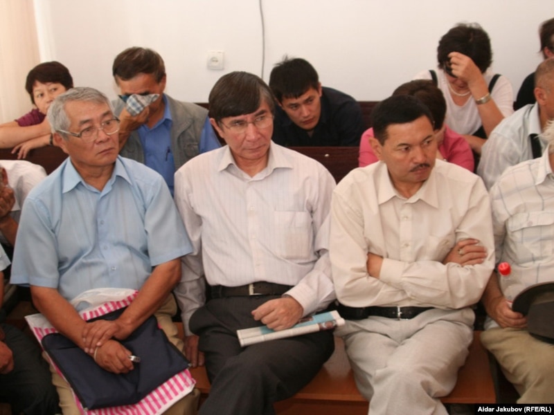 Сторонники осужденного оппозиционера Ермека Нарымбаева на заседании суда. Алматы, 11 августа 2010 года.