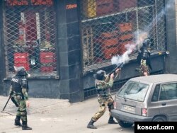 Иранские полицейские стреляют во время подавления антиправительственного протеста в Тегеране. 27 декабря 2009 года.