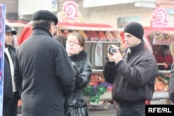 Неизвестный снимает на камеру интервью корреспондента радио Азаттык с главным редактором газеты «Жас Алаш» Рысбеком Сарсенбаем. Алматы, 6 января 2010 года.