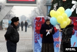 Полицейский наблюдает за Розланой Таукиной, руководителем прессозащитной организации «Журналисты в беде», и Раушан Есергеповой, женой осужденного журналиста Рамазана Есергепова. Алматы, 6 января 2010 года.