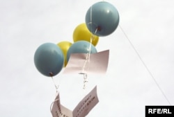 Организаторы акции сказали журналистам, что выпущенные в небо шары являются символом их борьбы за освобождение журналистов.