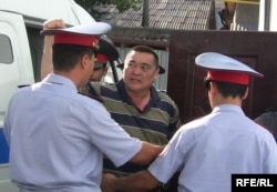 Рамазан Есергепов, осужденный на три года тюрьмы главный редактор независимой газеты «Алма-Ата Инфо», в момент доставки его в здание суда в день оглашения приговора. Тараз, 8 августа 2009 года.