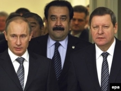Слева - направо: премьер-министр России Владимир Путин, премьер-министр Казахстана Карим Масимов, премьер-министр Беларуси Сергей Сидорский - на заседании Таможенного союза на уровне глав правительств. Санкт-Петербург, 11 декабря 2009 года.