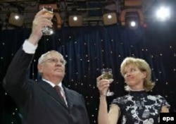 Бывший советский президент Михаил Горбачев с дочерью Ириной на праздновании своего 75-летия. Москва, 2 марта 2006 года.
