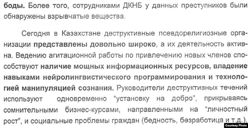 В партийном документе, в частности, указано, что такие группы финансируются специальными службами в западных странах. Авторы отмечают, что в Казахстане в этих группах пребывают десятки тысяч людей, нуждающихся в помощи.