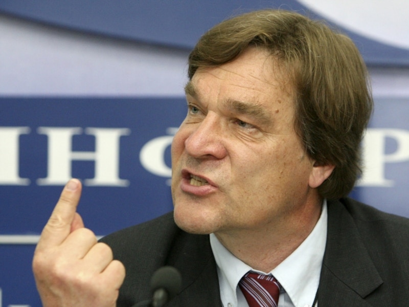 Киммо Кильюнен, председатель международной комиссии по расследованию Июньских событий в Кыргызстане, на пресс-конференции. Бишкек, 3 мая 2011 года.