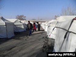 Палаточный городок беженцев, которые там и встретили зимние холода. Село Шарк Ошской области, 6 декабря 2010 года.