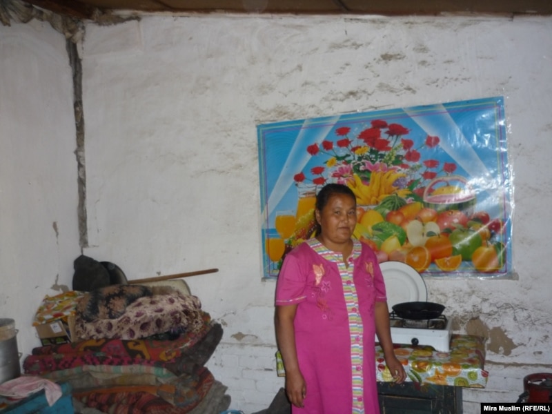 Фарида Толетаева в комнате здания бывшего наркодиспансера, где проживает со своей семьей. Село Базаркакпа Южно-Казахстанской области, 1 октября 2010 года.