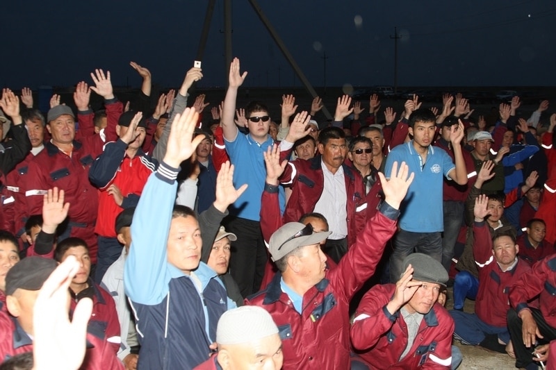 Тысячи работников производственного филиала «Озенмунайгаз» компании «Разведка Добыча „КазМунайГаз“», акции которой котируются на Лондонской фондовой бирже, продолжают забастовку, начавшуюся 26 мая. Многие активисты, в том числе юрист, представляющий интересы работников, были арестованы, над ними идет судебный процесс.