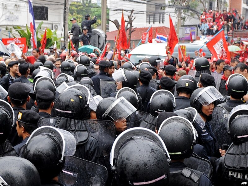 Оппозиционеры, так называемые краснорубашечники, большей частью выходцы из трущоб и бедных сельских районов Таиланда, считают, что нынешнее правительство пришло к власти незаконным путем, и добиваются проведения демократических выборов.