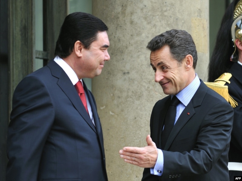 Президенты Франции Николя Саркози (справа) и Туркменистана Гурбангулы Бердымухамедов (слева). Париж, 1 февраля 2010 года.