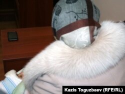 Жена одного из братьев Кулдошевых - узбекских беженцев-мусульман, со своим двухмесячным младенцем в суде. Алматы, 28 февраля 2011 года