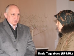 Жена узбекского беженца-мусульманина Умида Азимова передала обращение Комитета по спасению 29 беженцев-мусульман лидеру партии "Алга" Владимиру Козлову. Алматы, 29 января 2011 года.