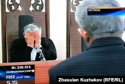 Один из казахстанских телеканалов показал якобы плачущим судью Мейрама Жангуттинова по делу бывшего министра Жаксылыка Доскалиева. Астана, 26 мая 2011 года.