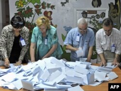 Идет подсчет голосов на избирательном участке по выборам президента Кыргызстана. Бишкек, 23 июля 2009 года.