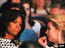 Мишель Обама и Светлана Медведева на концерте в Академическом музыкальном театре имени Станиславского и Немировича-Данченко. Москва, 7 апреля 2009 года.