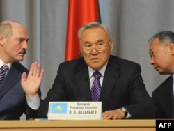 Президенты: Беларуси Александр Лукашенко, Казахстана Нурсултан Назарбаев и Кыргызстана Курманбек Бакиев. Минск, 27 ноября 2009 года.