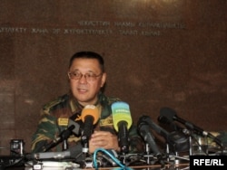 Председатель службы национальной безопасности Кыргызстана Кенешбек Душебаев делает заявление по поводу причин вооруженного насилия на юге страны. Бишкек, 24 июня 2010 года.