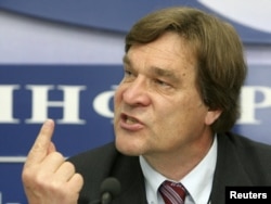 Киммо Кильюнен, председатель международной комиссии по расследованию Июньских событий в Кыргызстане, на пресс-конференции. Бишкек, 3 мая 2011 года.