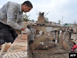 Узбекский мужчина заново отстраивает свой дом, разрушенный во время июньских событий. Село Шарк Ошской области, 7 октября 2010 года.